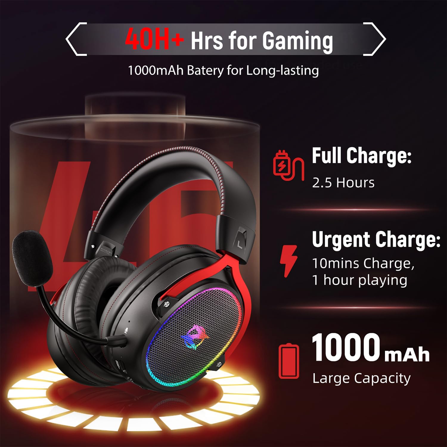 - Q: How long does the battery last on a full charge? A: The Ozeino Wireless Gaming Headset offers over forty hours of battery life on a full charge, making it suitable for extended gaming sessions.