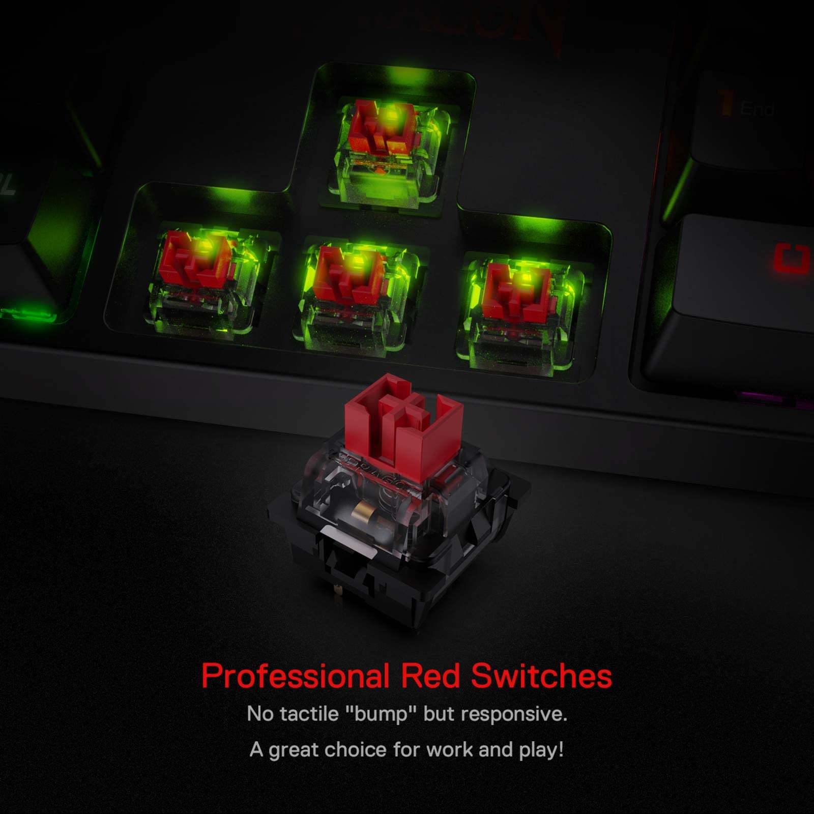 - Q: What type of switches does the Redragon K582 use? A: The Redragon K582 is equipped with pluggable Redragon red switches, which are linear switches known for their smooth operation and require less force to press, making them suitable for both gaming and typing.