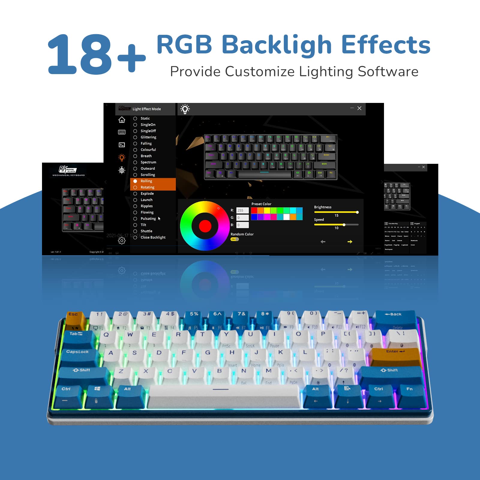 - Q: What is the layout of the RK ROYAL KLUDGE RK61 Plus? A: The RK61 Plus has a compact sixty percent layout, which helps save space while still providing essential keys for gaming and productivity.