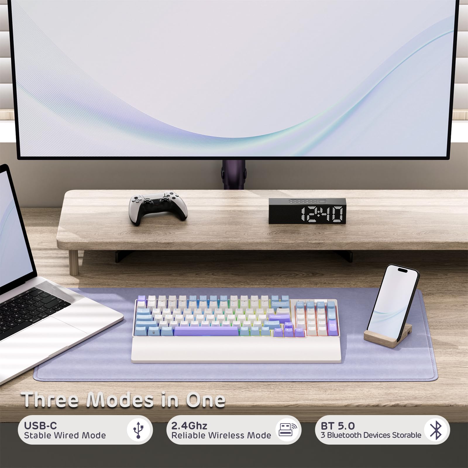 - Q: Is the RK96 keyboard compatible with different devices? A: Yes, the RK ROYAL KLUDGE RK96 is compatible with a variety of devices, including PCs, laptops, and tablets, thanks to its Bluetooth 5.0, 2.4GHz wireless connection, and USB-C wired mode.