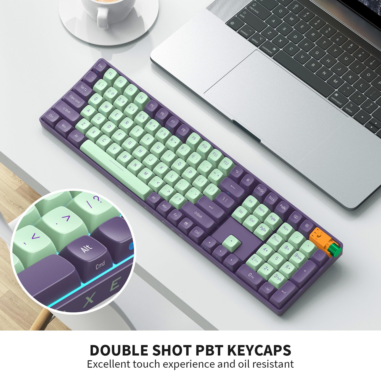 - Q: What type of keycaps does the ROYALAXE R108 have? A: The ROYALAXE R108 features double shot PBT keycaps, which are durable and designed to prevent grime buildup over time, ensuring longevity and a consistent feel.
