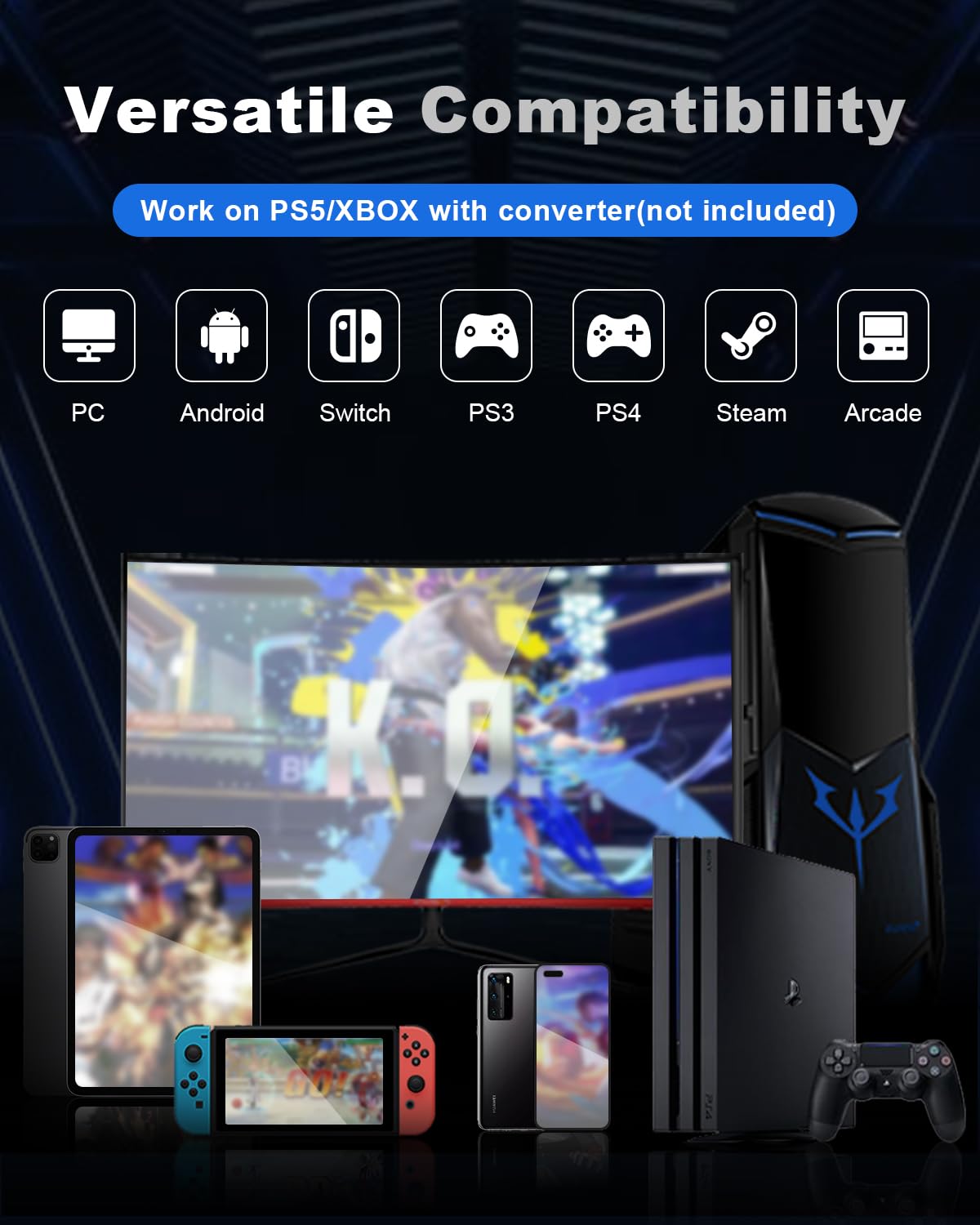 - Q: How does the leverless design of this controller improve gaming performance? A: The leverless design replaces the traditional joystick with four movement buttons, enabling more precise input. This design allows for quicker reactions and improved accuracy during gameplay, which is especially beneficial in fast-paced gaming scenarios.