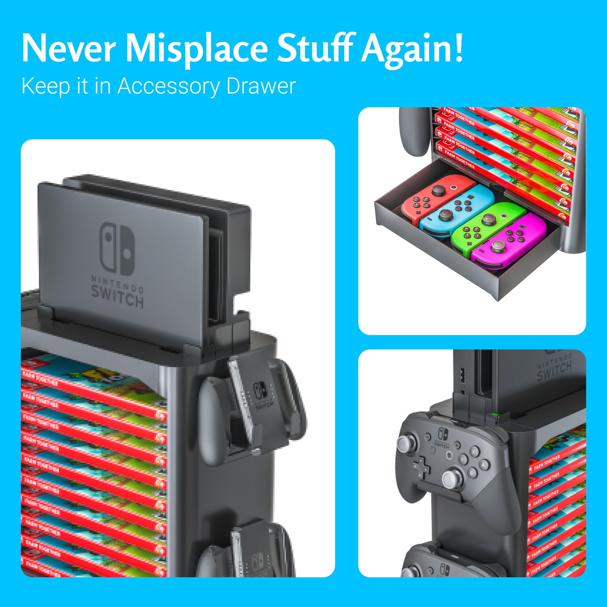 - Q: Does the storage tower have additional storage options? A: Yes, in addition to holding game cases and controllers, the Skywin Game Storage Tower features a bottom drawer that provides extra storage space for additional gaming accessories.