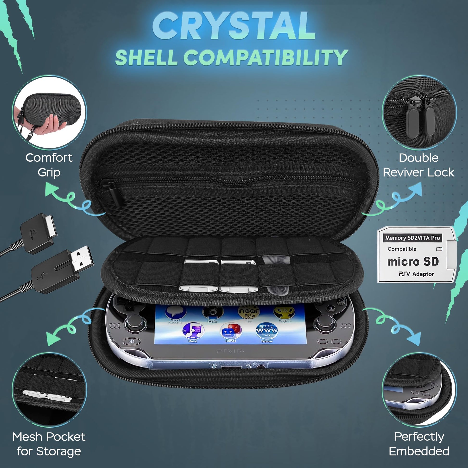 - Q: Is the carrying case travel-friendly for my PS Vita? A: Yes, the custom-fit carrying case is designed for gamers on the go, protecting your PS Vita from dust and damage while also providing organized storage for game cartridges and accessories.