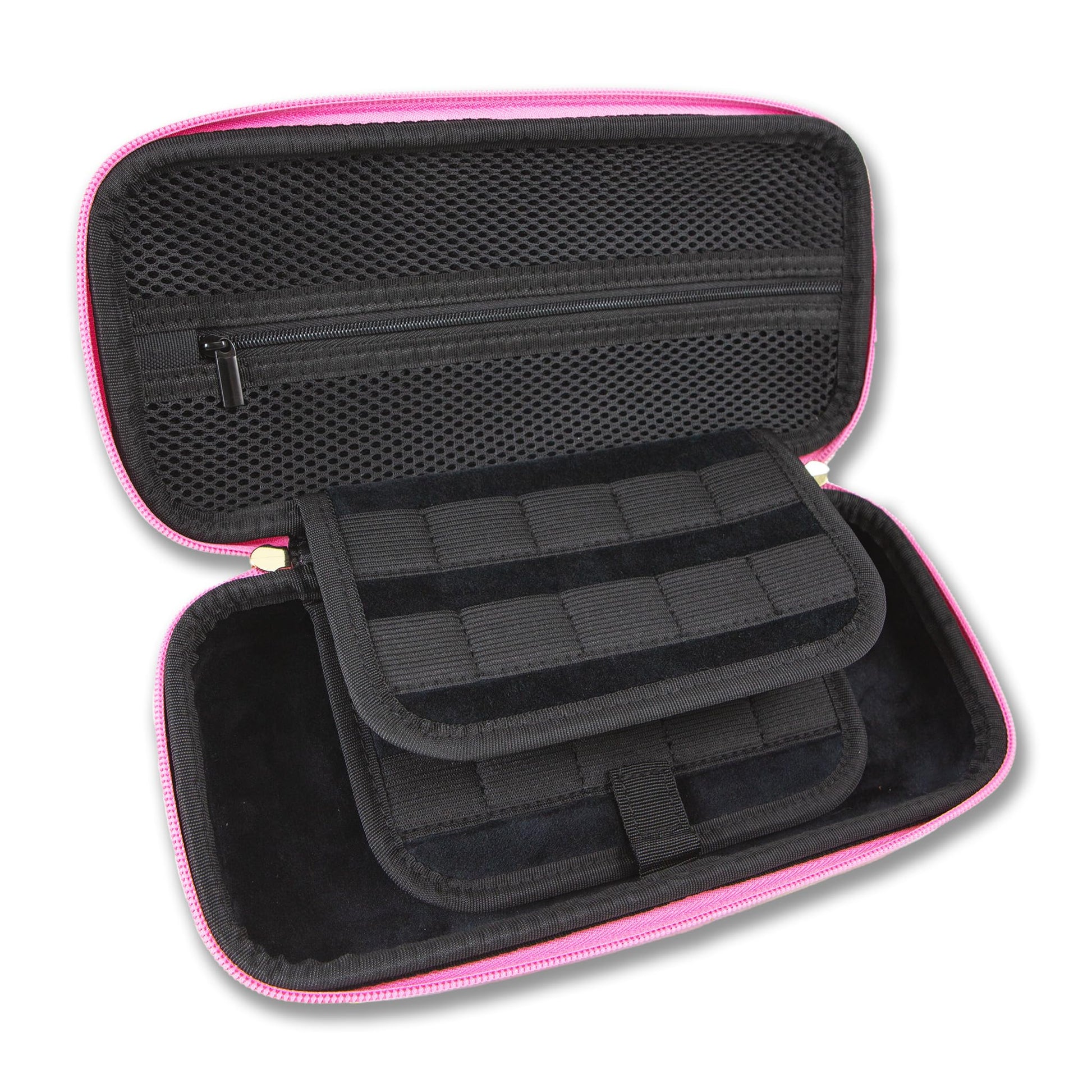 - Q: What accessories can I store in this carrying case? A: In addition to your Nintendo Switch, the case has organized storage for cables, accessories, and up to twenty game cards.