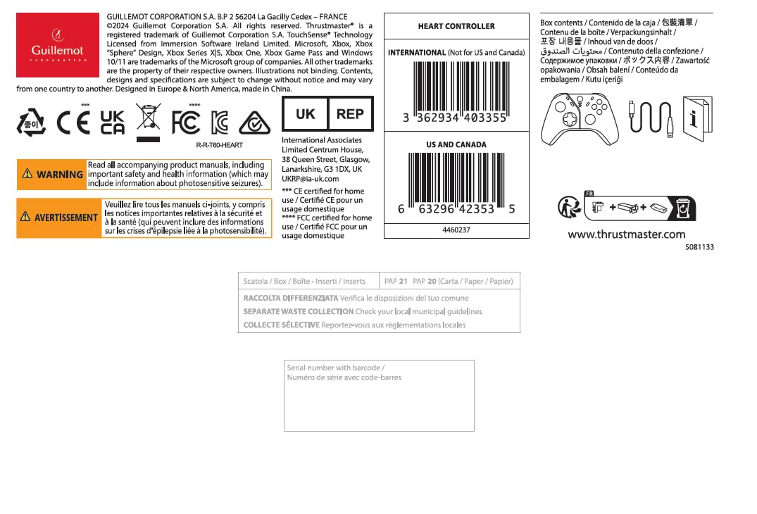 - Q: Is the Thrustmaster HEART CONTROLLER compatible with PC? A: Yes, the Thrustmaster HEART CONTROLLER is compatible with PCs running Windows 10 and 11, in addition to being officially licensed for Xbox Series X|S and Xbox One.