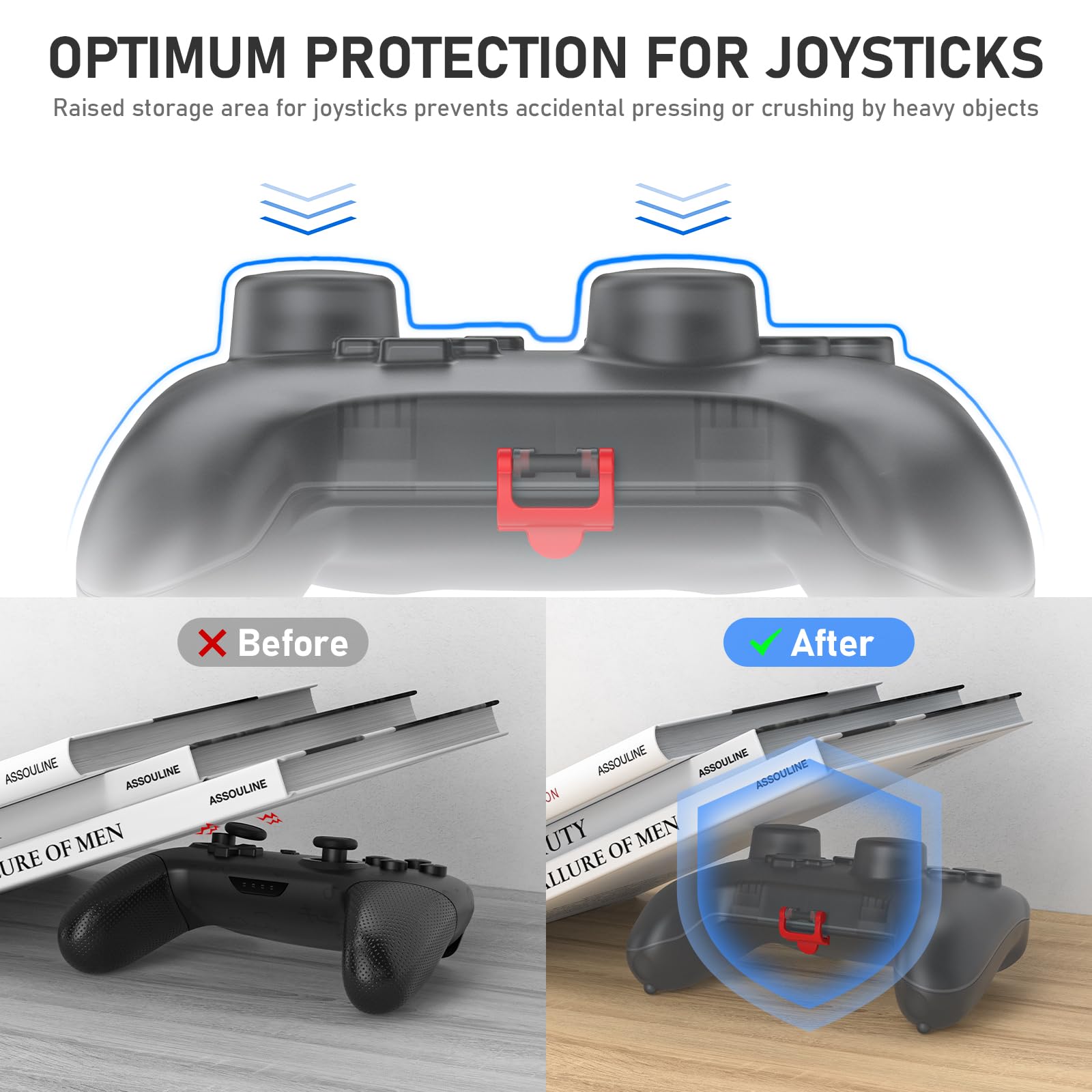 - Q: Does the case provide protection for the controller's joysticks and buttons? A: Yes, the case features a raised space at the top to store the joysticks without pressing against them, protecting against button damage and joystick drift.