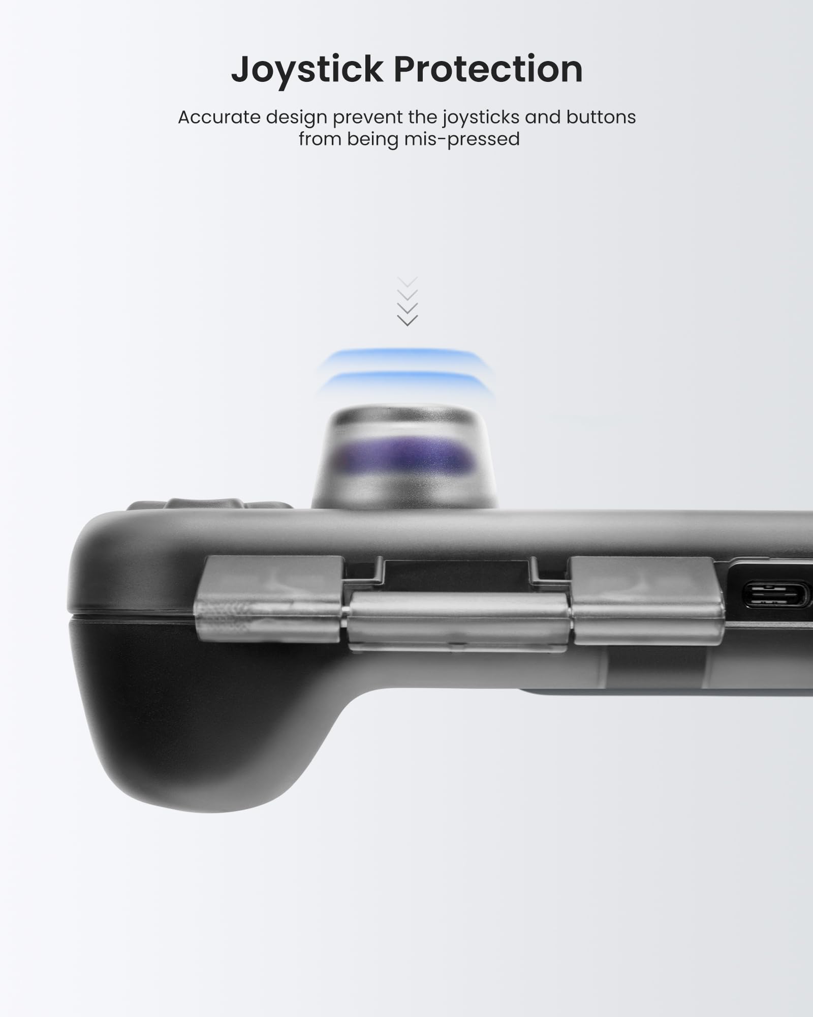 - Q: Does the tomtoc Armor Case have any design features for joystick protection? A: Yes, the case includes raised areas designed to prevent pressure from being applied directly to the joysticks and buttons, along with space for slim joystick grips.