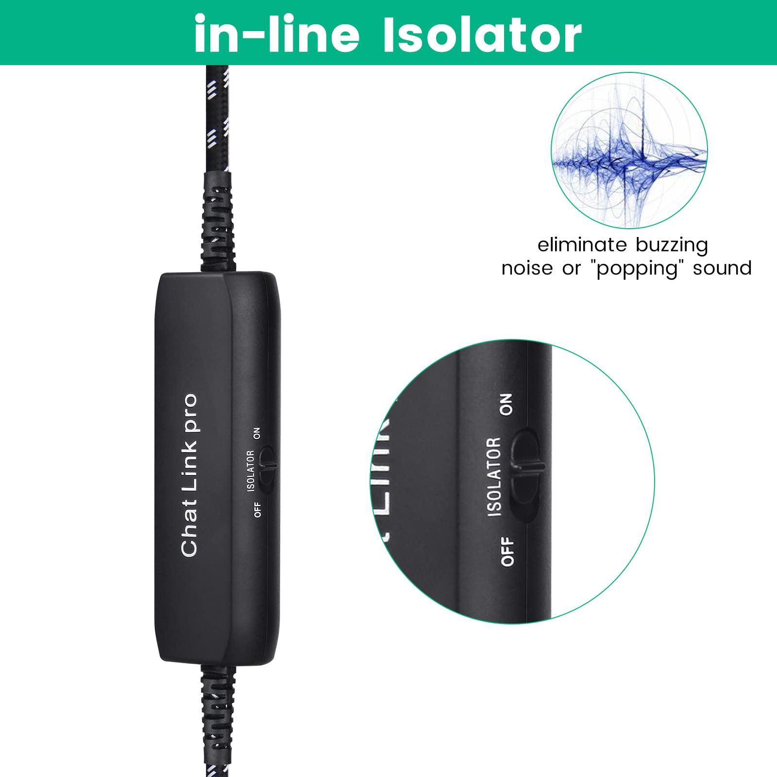 - Q: What does the switchable line isolator do? A: The switchable line isolator helps eliminate buzzing noise or 'popping' sounds during gameplay, ensuring a clearer audio experience.