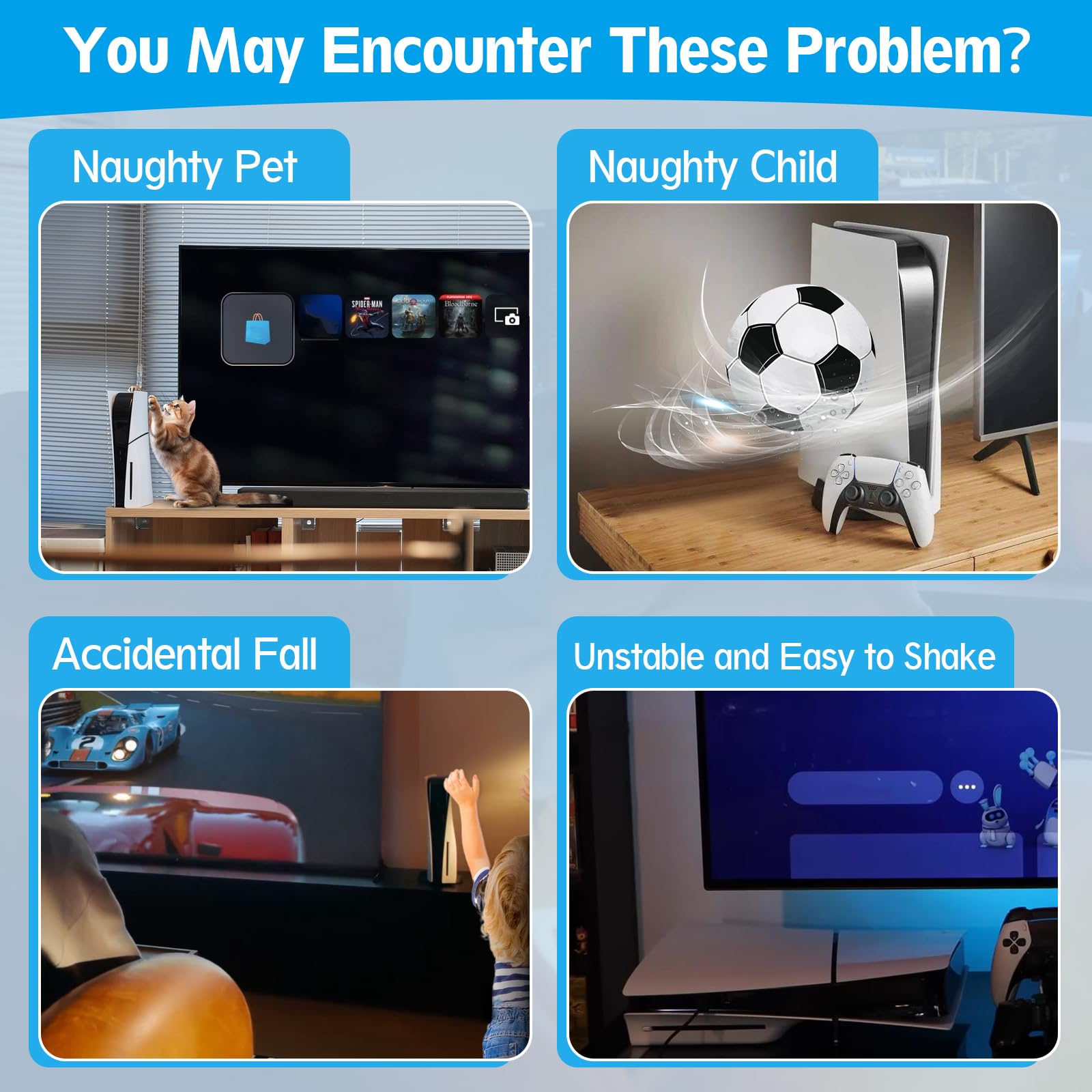 - Q: Can I use the YWLRONG stand on any flat surface? A: Yes, the stand is suitable for use on various flat surfaces such as TV tables, shelves, or any other flat area where you want to place your PS5 Slim.