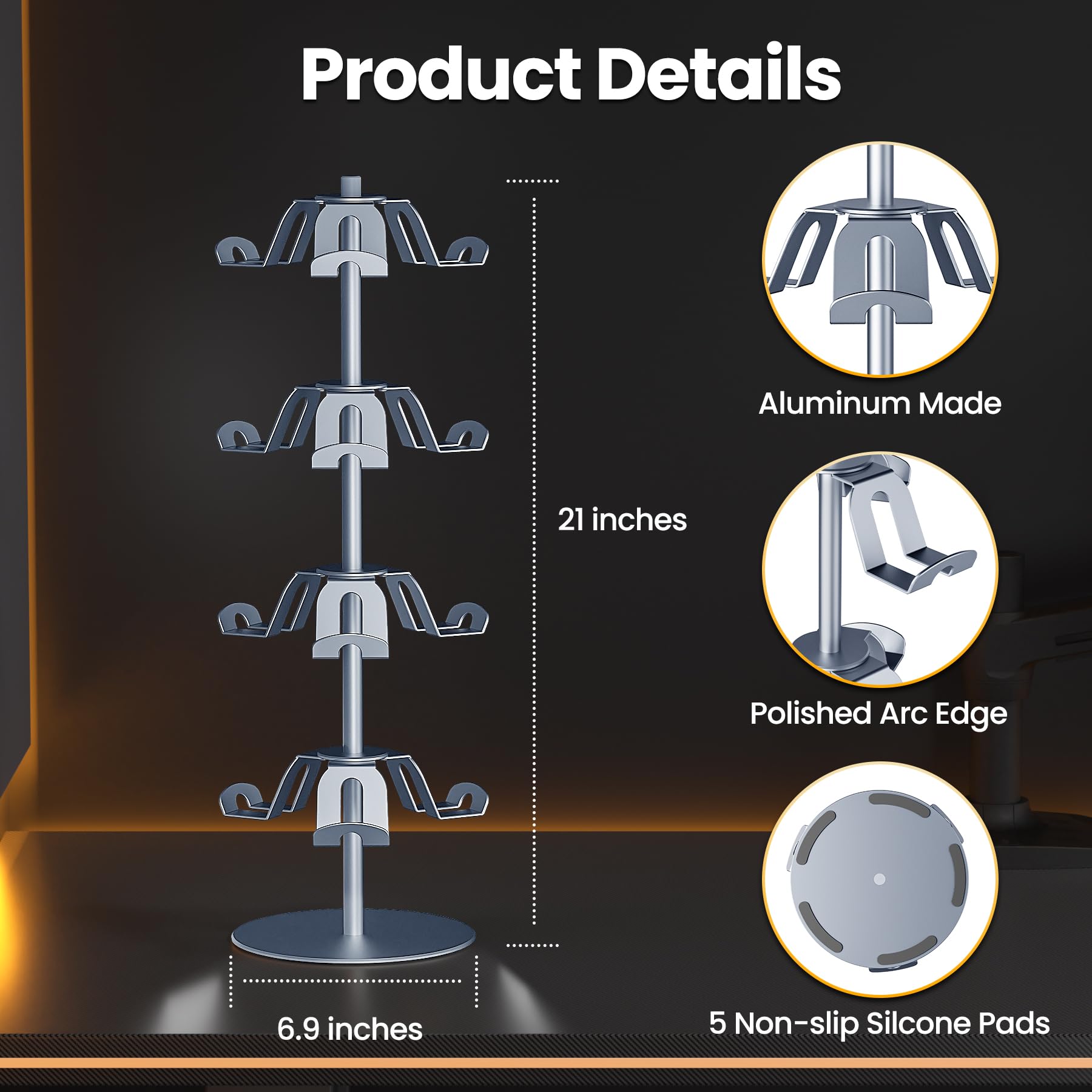 - Q: Does the stand rotate? A: Yes, the controller stand features a 360-degree rotatable design with four individually rotating layers, allowing easy access to your controllers and headsets from any angle.